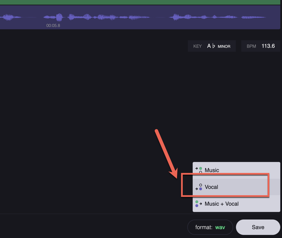 - Lọc tạp âm, bằng cách upload file voice đã khi lên công cụ: https://vocalremover.org/ khi tải về chỉ chọn phần Vocal.