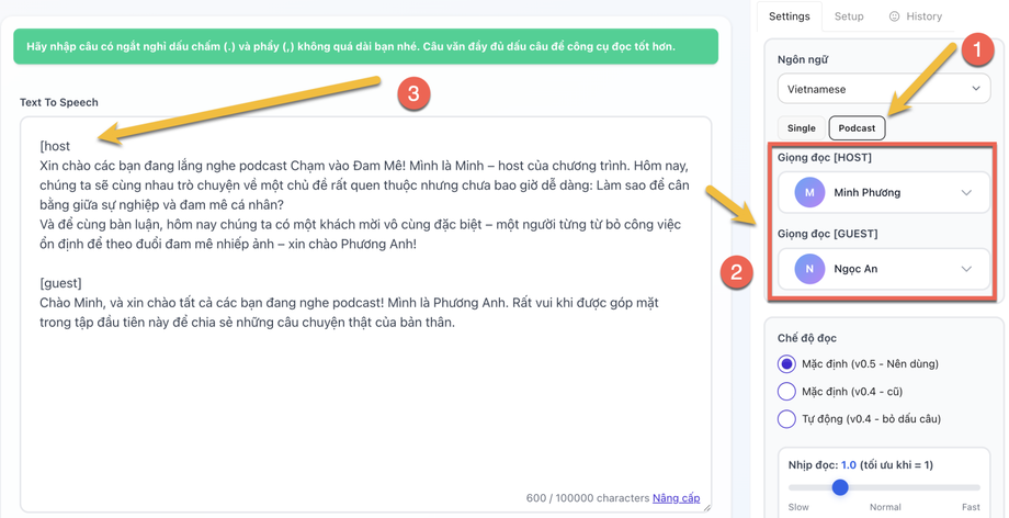Hướng dẫn tạo Podcast 2 giọng đọc
